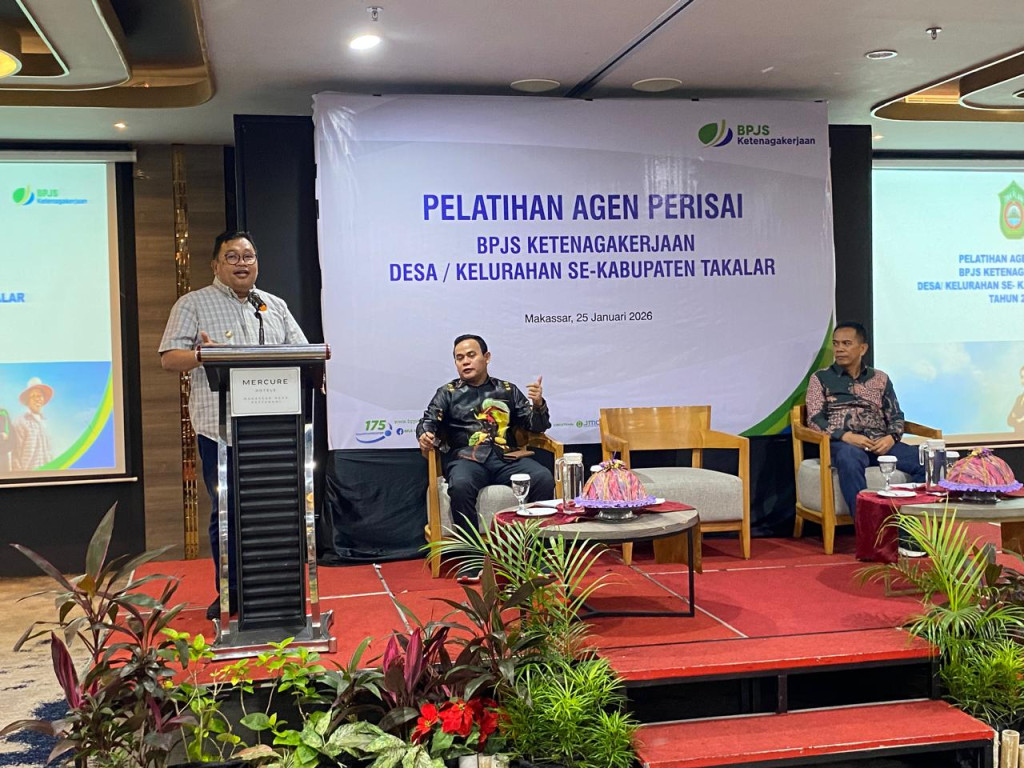 Bupati Takalar Ir. H. Mohammad Firdaus Daeng Manye,.MM membuka secara resmi Pelatihan Penggerak Jaminan Sosial Indonesia (PERISAI) BPJS Ketenagakerjaan Desa dan Kelurahan se-Kabupaten Takalar yang berlangsung di Hotel Mercure Makassar, Minggu (25/1/2026).