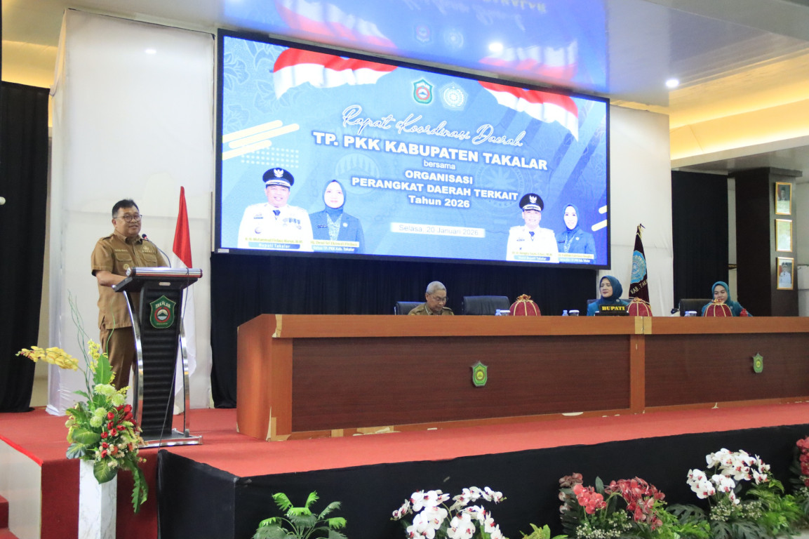 Bupati Takalar Ir. H. Mohammad Firdaus Daeng Manye,.MM membuka secara langsung Rapat Koordinasi Daerah TP. PKK bersama OPD Terkait Tahun 2026 di Ruang Pola Kantor Bupati Takalar, Selasa 20 Januari 2026.