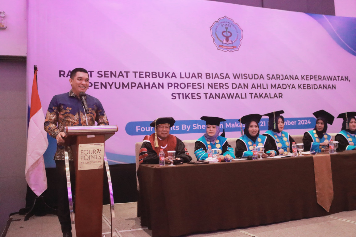 Perdana Pasca dilantik sebagai Pj. Bupati Takalar, Dr. H. Muh. Hasbi,. S.STP,.M.AP,.M.Ikom menghadiri Wisuda Ahli Madya Kebidanan, Sarjana Keperawatan dan Profesi Ners Sekolah Tinggi Ilmu Kesehatan Tanawali Takalar Tahun Akademik 2023/2024 Sabtu, 21 Desember 2024 di Four Points By Sheraton Makassar.