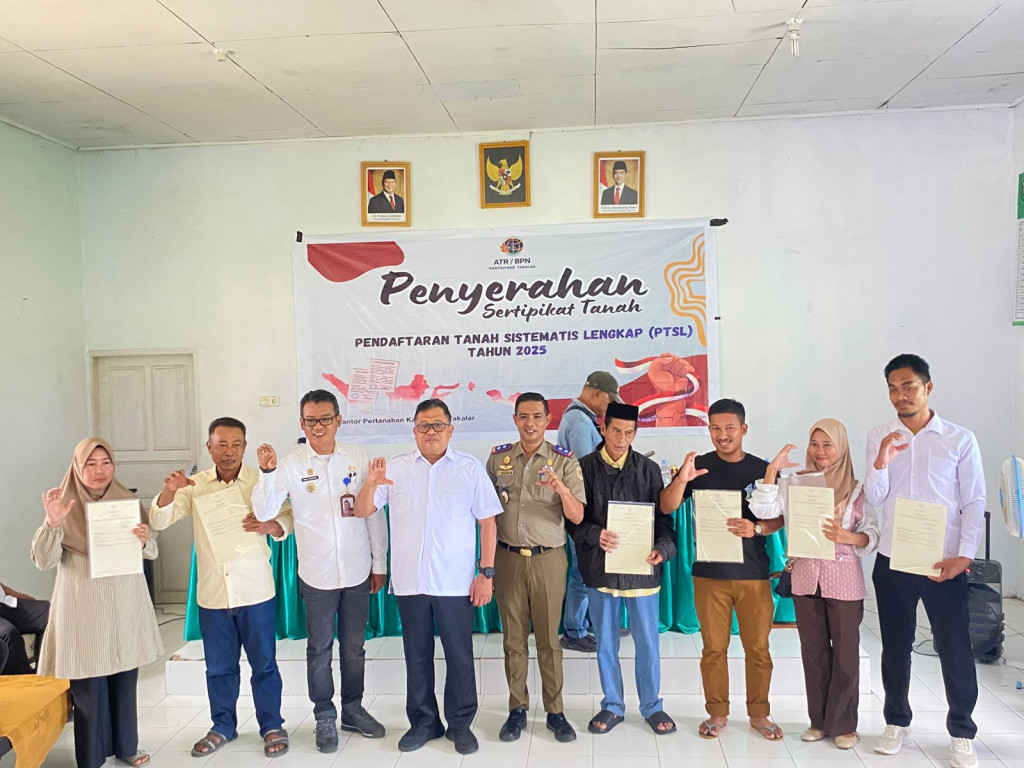 "Dengan adanya sertifikat, akan memberikan kepastian hukum atas kepemilikan tanah juga melindungi dari praktik mafia tanah dan membuka akses ke lembaga keuangan formal sehingga masyarakat dapat memanfaatkan sertifikat ini dengan sebaik-baiknya dalam pengembangan usaha untuk meningkatkan kesejahteraan." ujarnya.