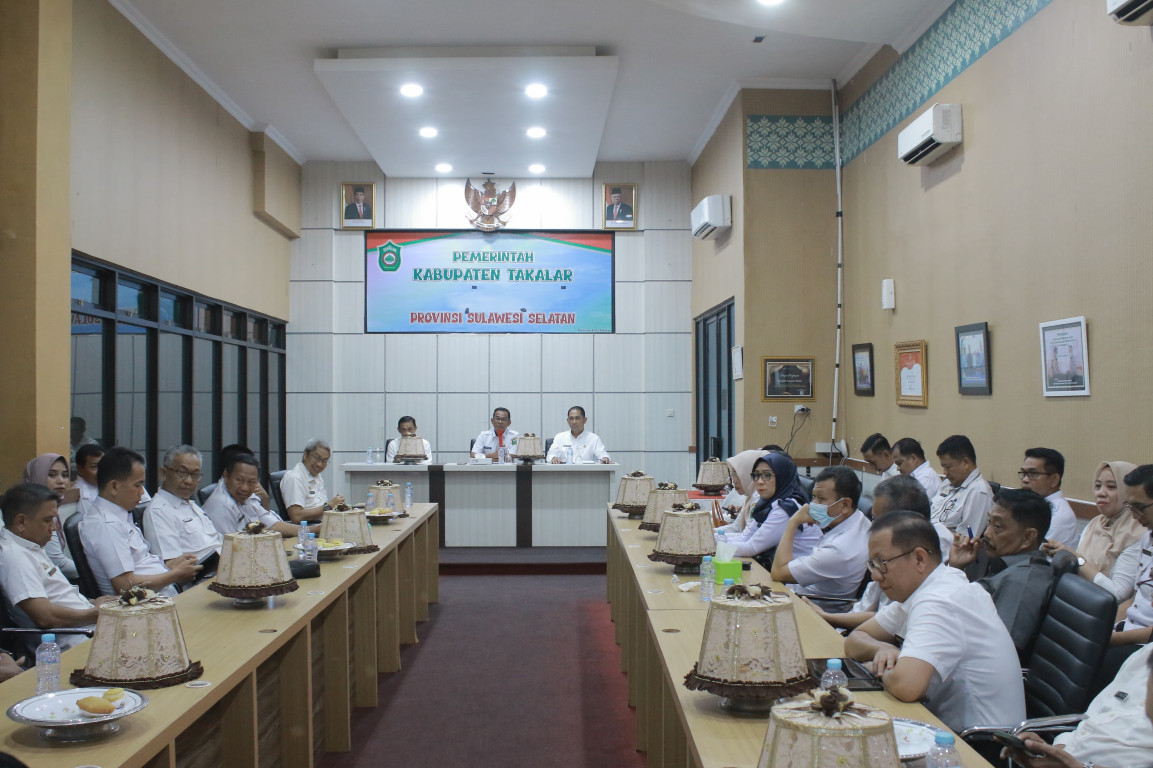 PJ Bupati Takalar Dr. Setiawan Aswad, M.Dev.,Plg, memimpin Rapat Kordinasi kunjungan kerja Penjabat (PJ) Gubernur Sulawesi Selatan, di ruang rapat Sekretariat Daerah Kabupaten Takalar, Rabu (16/10).