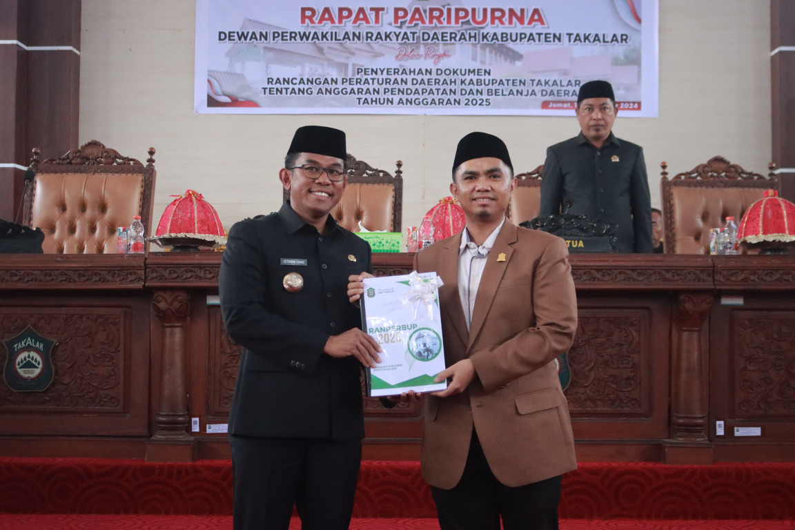 Pj. Bupati Takalar menyerahkan langsung Dokumen Ranperda Tentang APBD Tahun Anggaran 2025 kepada DPRD Takalar yang diterima oleh Wakil Ketua DPRD dan disaksikan Forkopimda Takalar, Sekda Takalar, Pejabat Adimistrator dan Pejabat Pengawas Kab. Takalar.