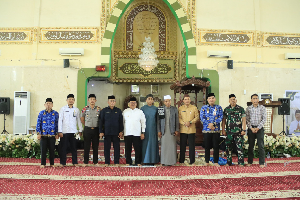 Bupati Takalar Ir. H. Mohammad Firdaus Daeng Manye,.MM bersama Wakil Bupati Takalar Dr. H. Hengky Yasin,.S.Sos,.MM menghadiri Peringatan Isra' Mi'raj 1447 Hijriyah di Masjid Agung Kab. Takalar, Senin (19/1/2026).