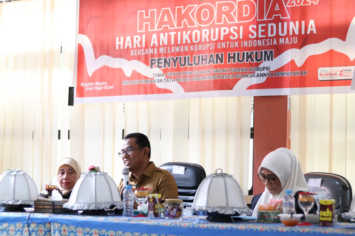Bertempat di Aula Dinas Lingkungan Hidup dan Pertanahan Kab. Takalar, Pj. Bupati Takalar Dr. Setiawan Aswad,.M.Dev,.Plg membuka kegiatan Penyuluhan Hukum Hari Anti Korupsi Sedunia (Harkodia) dengan Tema "Upaya Pencegahan Tindak Pidana Korupsi melalui Perbaikan Tata Kelola Organisasi Pasca dilakukannya Penindakan".