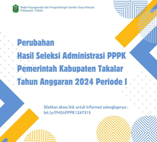 Perubahan Hasil Seleksi Administrasi PPPK Pemerintah Kabupaten Takalar Tahun Anggaran 2024 Periode I.