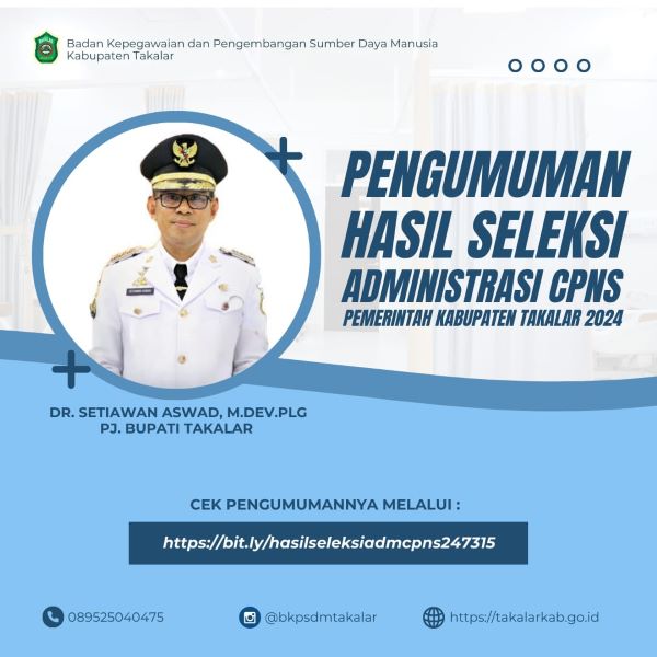 Pengumuman Hasil Akhir Seleksi CPNS Pemerintah Kabupaten Takalar Tahun Anggaran 2024.